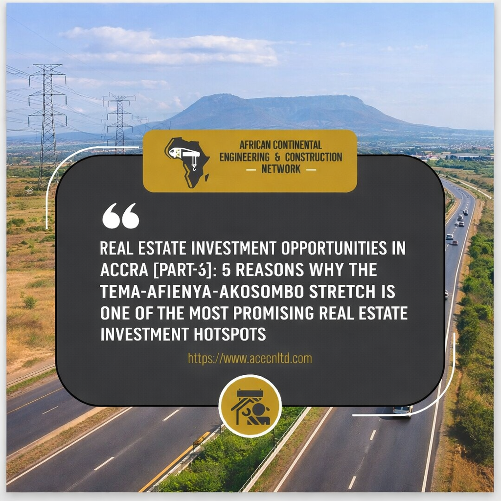 In part 2 of this series, we looked at the real estate investment prospects on the Tema-Aflao Highway stretch. If until now you haven’t laid hands on that article yet, kindly visit our website and read it meticulously. Today we are looking at part-3 which deals with the real estate investment prospects along the Tema, Afienya-Akosombo stretch, but before we go into the nitty-gritty of the discussion, let me remind you that, the Africa Continental Engineering & Construction Network Ltd is Ghana’s leading thought leader in all real estate services.